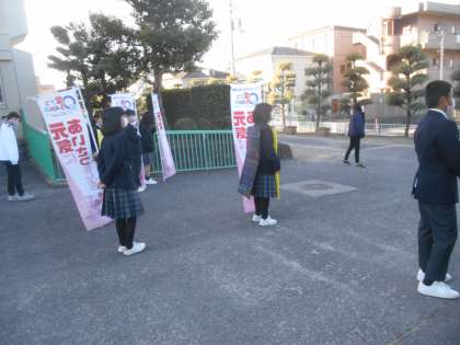 今日も可能な範囲で一人ひとり名前を呼びながらあいさつ運動をしていました。すばらしい。また、名札や掃除をしっかりやりましょう、などという声かけもありました。