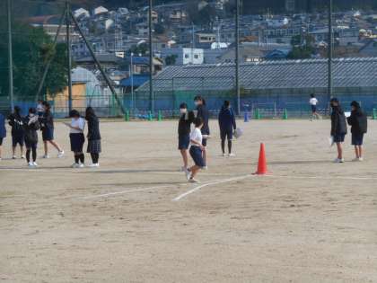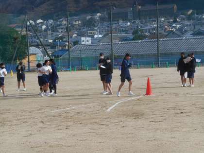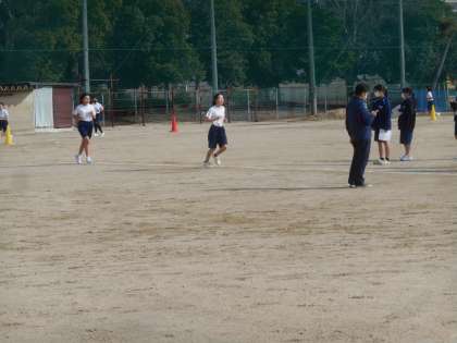 3年生の女子体育です。15分間走です。今日も大きな声で声援が飛んでいました。すばらしい。