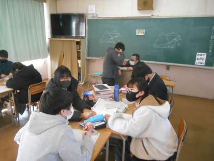 真剣に問題を解いていました。分からないところは先生や班の人に教えてもらっています。