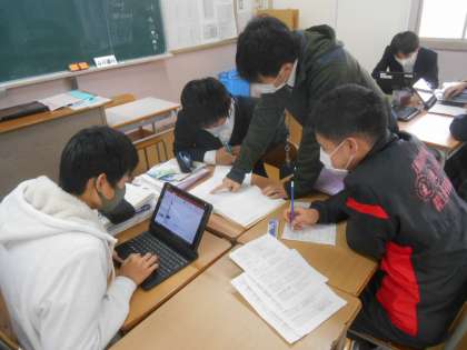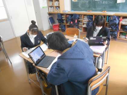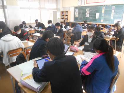 英語のスピーキングの内容を深めるため、タブレットも使い、友人や先生にも聞きながら調べていました。