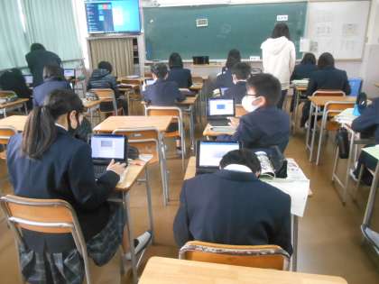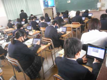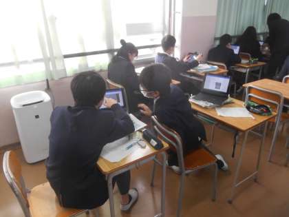 1年生の理科です。いよいよレポート作成をデータ入力でやっていました。ぐんぐん前に進みます。紙に描かれたイメージマップをPCで写真データにしたうえで、データ入力です。すばらしい。