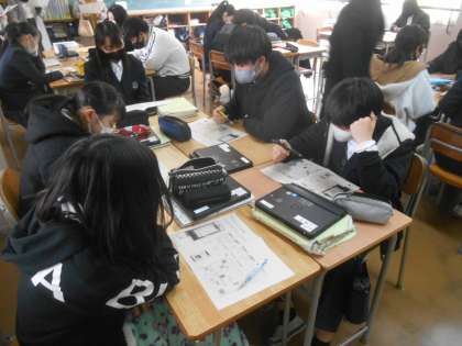 3年生の技術です。ここからは参観授業です。SNS上の個人情報についてしらべていこうということを模擬的にやっていました。うーん、これも現代ではとても興味深い授業ですね。知らなかったらひどいことになりかねません。