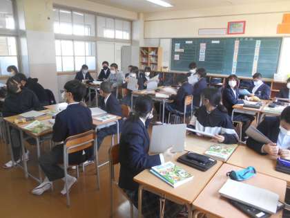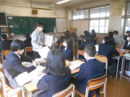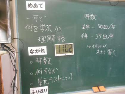 1,2年では年間で70時間前後あった技術家庭科ですが、3年では35時間前後になります。そんな説明や内容、単元テストについて説明がありました。