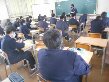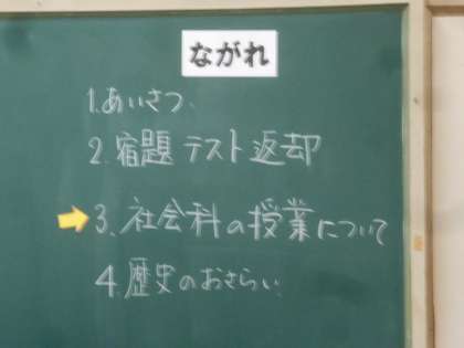 社会のこの時間も今年度初めてのようで、詳しい説明がありました。こんなときにも、めあてと流れを大事にしているというところは、生徒にとっても分かりやすい授業につながります。