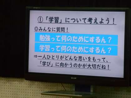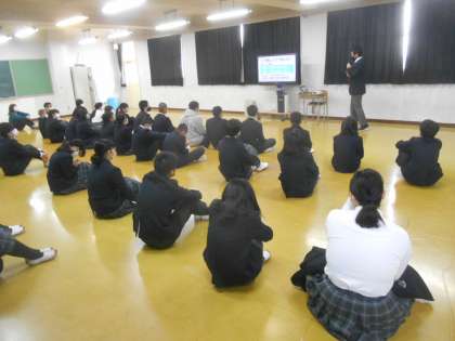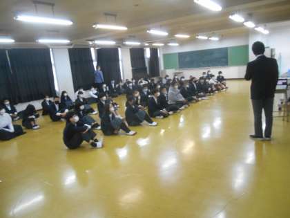 前回、2年生に今年は定期テストがなくなり、単元テストをやりますなどの話をしました。今日は3年生に同じ内容の話をしました。3年生は受検があるので、より真剣に聞いていました。