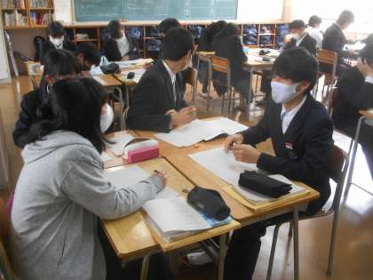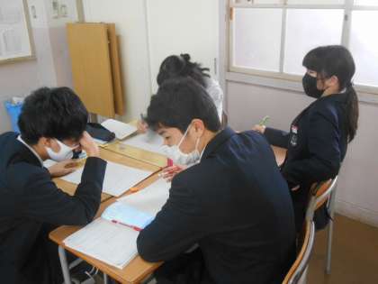 学習班で詩の内容を考えながら、誰がどこを読むかを考えているところです。