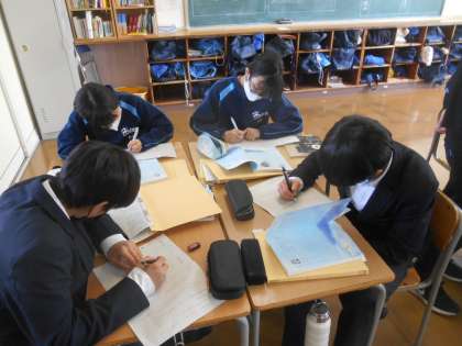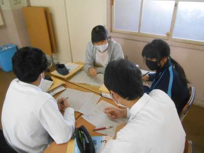 詩の授業です。グループで詩を読みます。昨日は、誰がどこを読むかを決めていましたが、今日はどんな読み方がふさわしいのか考えていました。