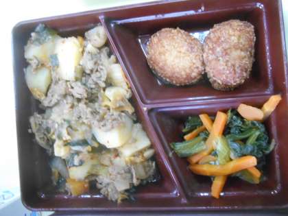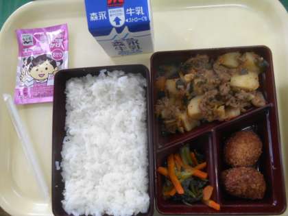 今日の給食です。予備のごはんやおかずを食べる人が多くて、頼もしく感じます。