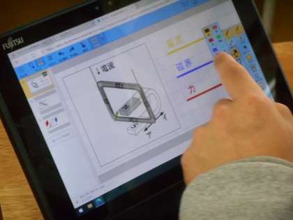 フレミングの左手の法則について勉強が続いています。タブレットを活用して学んでいました。