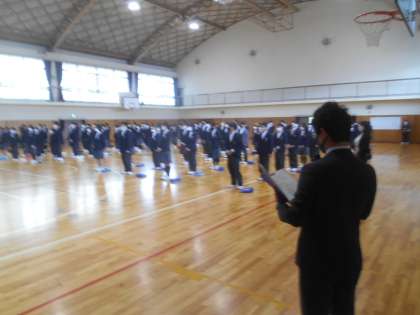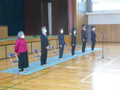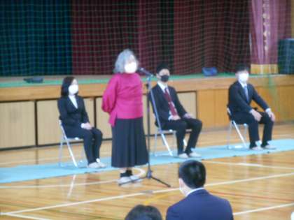 今日の6限に離任式を行いました。令和2年度末で北中を去られた先生があいさつをされました。