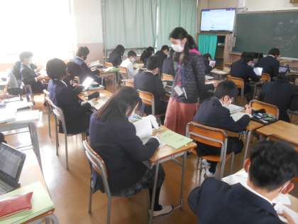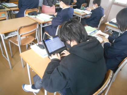 タブレットを使って、自分の考えをまとめ、それを先生のPCにデータで送っていました。