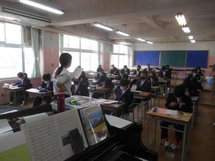 初めての音楽の授業のようです。評価の仕方など、丁寧な説明がありました。