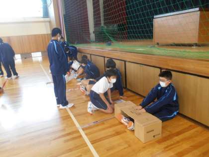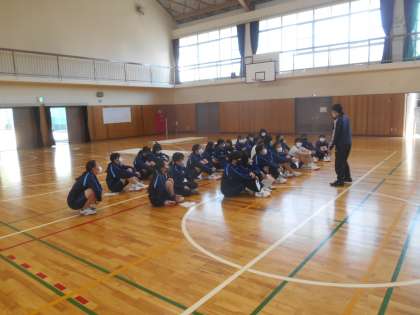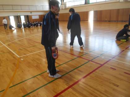 体力測定をしていました。柔軟性、握力、反復横跳びなどです。
