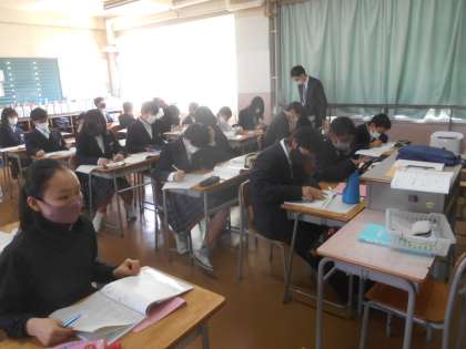 問題を解いていました。先生が質問を受けに机間巡視をしていました。