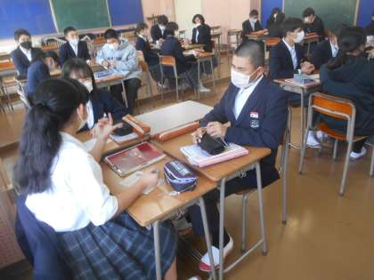 イントロクイズです。先生が「ヒントいりますか・」と聞くと、「いりません、いりません。」とすごくやる気を見せていました。すばらしい。