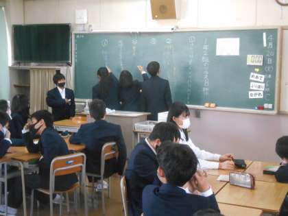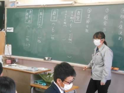 2年1年の6限の学活の様子です。班が新しくなって係決めやクラス目標を考えていました。
