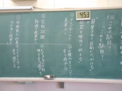 「これは駄目?これも駄目?」という教材文を使って考える授業です。道徳です。「夜中のテレビゲーム」「作曲家が徹夜で曲を作る」その他、いくつかのケースについて、どう考えるか話し合いました。