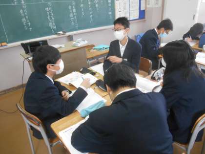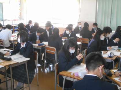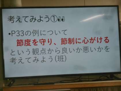 班で考える時間が終わり、全体交流の場面では、「ゲームを夜中にしてしまうのは、欲望に負けているからです。」ときっぱり言う生徒がいました。すばらしい。