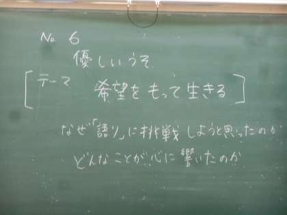 「優しいうそ」という道徳の教材文を読んで考えの幅を広げました。若いときに事故にあって大けがをした女性が努力して、体力を可能な限り回復させて、現在も語り部として活躍されているというお話です。