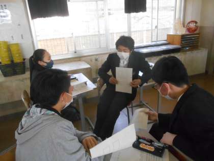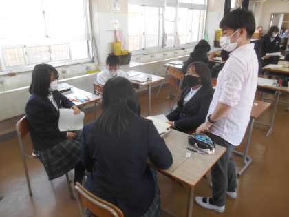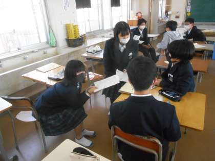 5限にあった2年生の美術です。「美術と聞いてイメージすること」「自分の好きな絵、それを描いた理由」などを学習班の形で交流しているところです。