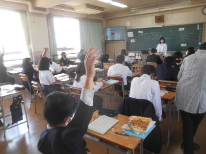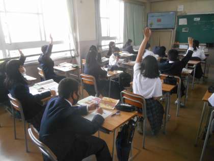 先生の質問に挙手する生徒がたくさんいました。うれしくなりました。
