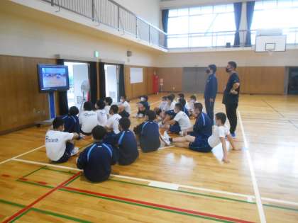 集団行動の時間が続いています。先日、行進の様子をビデオに撮影したものを今日、見ていました。「3年生、すごいきれいやぞ。」と体育の先生がほめていました。