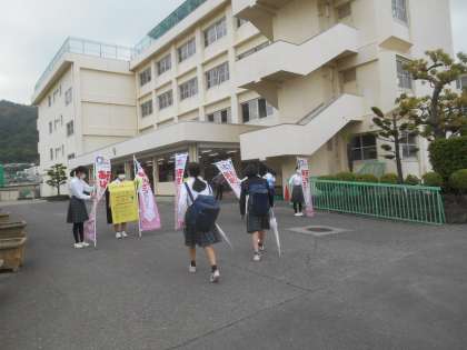 梅雨に入りましたが、あいさつ運動はがんばっています。ありがとう。何度も書きますが、毎日生徒会役員さんが立って、かつ、「おはようございます。」「名札をつけてありがとう。」「班活動をしっかりやりましょう。」などなどの声かけをしています。これまた、すばらしい。