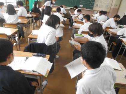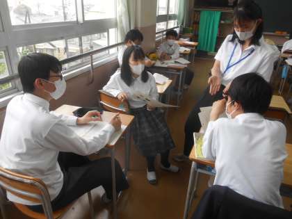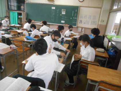 教育実習の先生の授業です。質問がはっきりしていたので、生徒たちも何を考えていいのか分かりやすくていい授業でした。