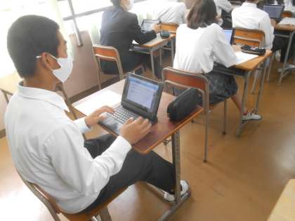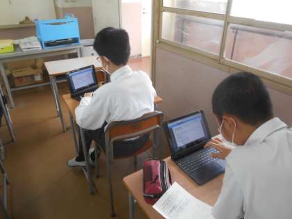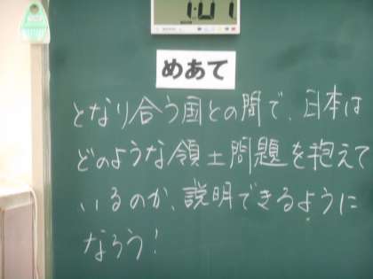 「校長先生、授業で隣り合う領土問題で調べたことをプレゼンさせます。見に来てください。」と言われたので、飛んでいきました。まずは、前時までのプレゼン内容の最終確認をしているところです。