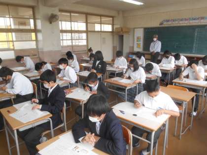 2年の英語の単元テストの様子です。もちろん、全集中で受けています。