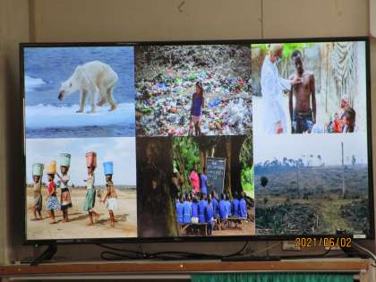 このクラスではテレビに映し出された写真を見て、感じること、想像することをグループごとに話し合い、発表していました。