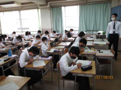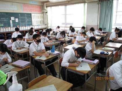 2年生の国語です。敬語について学び、問題を解いているところです。しっかり集中していました。