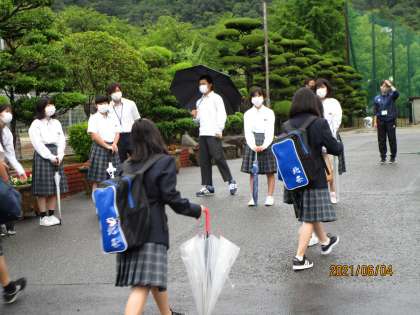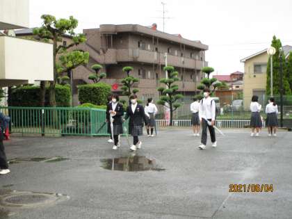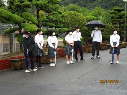 今日は生徒会役員の人に加えて体育委員の人たちがあいさつ運動に参加してくれました。ありがとう。登校時のみ雨がやみました。これもありがとうです。