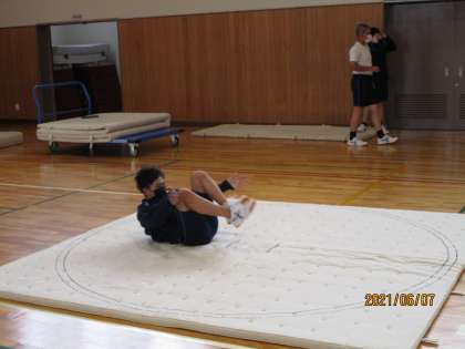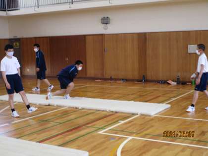 マット運動を続けて練習していました。倒立前転がきっちり決まると美しいです。