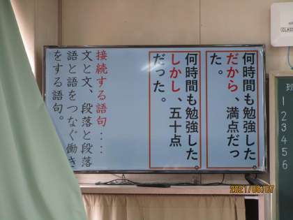 文法の勉強をしていました。今日は接続語(接続詞)の問題を解いていました。