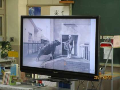 今日の人権クラブでは、貝塚市にある「ある精肉店のお話」という絵本を勉強しました。牛を解体する屠場のお話です。顧問の先生が朗読しました。誰一人、私語をせず、シーンとした中で50分ほど聞きました。みんなの集中力もすばらしかったし、内容もしっかりしたいい勉強ができました。