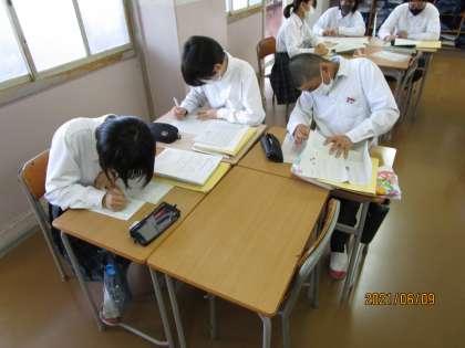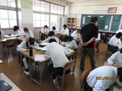 三大和歌集(万葉集、古今和歌集、新古今和歌集)の中から和歌を選び、紹介文を書こうという授業です。大意は教えてもらったものの、難しい課題です。しかし、書く進めている人が何人もいました。すばらしい。