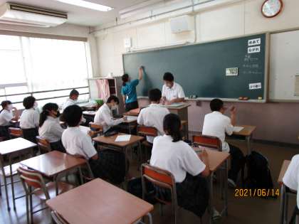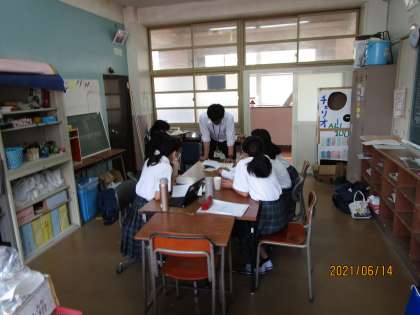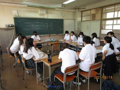 放課後の専門委員会の様子です。学校を創るのは生徒自身です。それを具現化するために班長会、拡大班長会、生徒会、専門委員会などで意見を出し合います。順に、生徒会役員会、体育委員会、報道委員会です。どこも真剣です。