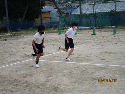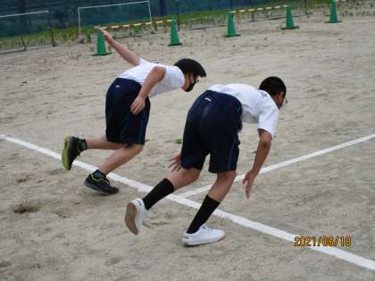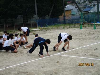 小学校まではあまりやらないようです。まずは、形になれるということで30%の力でダッシュを10mほどしていました。スタート練習の前に体育委員の二人が旗を持って「よーい、ドン」の練習を大声でやっていました。かっこよかったです。