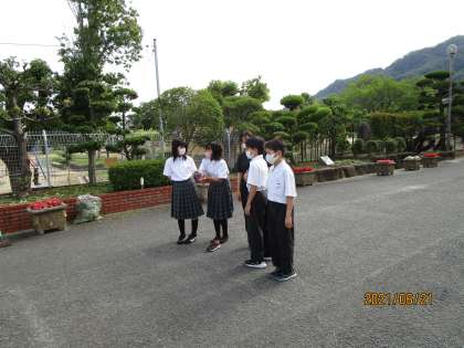 今朝は気温もほどほどで過ごしやすい朝でした。生徒会役員さんと今日は1年生の学級委員さんがあいさつ運動に参加しました。ありがとう。