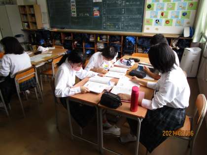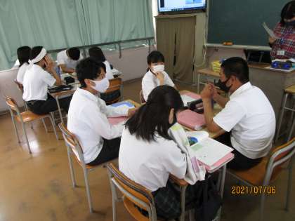 何を勉強しているのかと見てみると、広島に落とされた原爆のことで有名な貞子さんのお話が英語の教科書に載っているようです。3年生は9月に沖縄の修学旅行を控えており、平和学習にも力を入れているところなので、その意味でも有意義な学習となります。