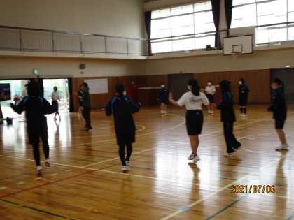 これは円になってダンスをしているところです。校長も50年前に習ったなつかしいダンスです。古くからあるダンスですが、今でも踊ると楽しそうです。ワイワイ言いながら練習していました。