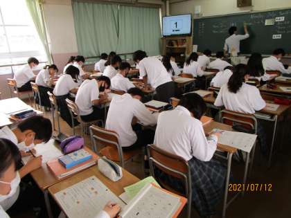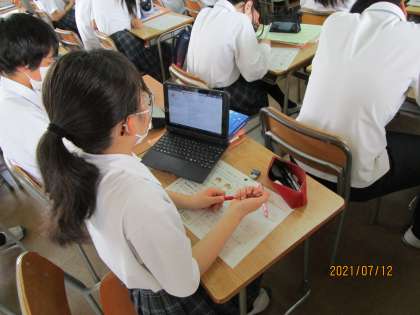 プリントの問題を解いています。できた人が先生に解答をくださいと言いにいったところ、先生が「ごめん。タブレットの〇〇に入れといた。そこで見てね。」と答えていました。こうすることで、紙の量を減らし、紛失もなくなり、何度でも見れるし、タブレットの活用にもつながります。世の中がどんどんペーパーレス化していくことを思えば、これもいい取り組みだと思いました。