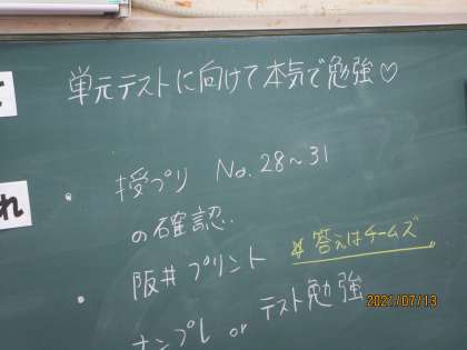 単元テストに向けての取り組みです。よく見ると、マス目があって、そこに数字を埋め込む作業をしている生徒が多くいました。「これは何ですか?」と聞くと、「ナンプレをやっています。」とのこと。ナンプレは、9×9のマス目を、タテ9マス・ヨコ9マス・各3×3のマス目が1から9までの数字をそれぞれひとつずつ含むように埋めるゲームです。脳トレの効果が大きいそうです。