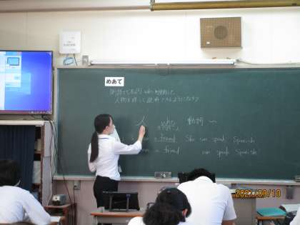 教育実習の先生が生まれて初めての授業をしているところです。関係代名詞の説明をしているところです。