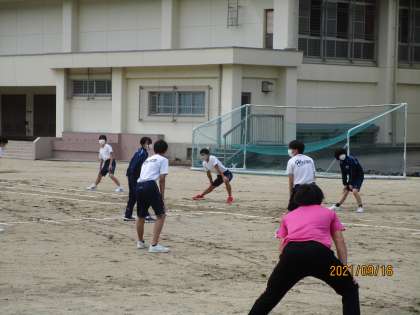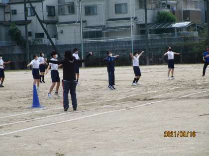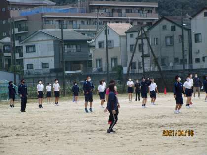 3限、3年生の学年練習の様子です。体育委員の体操の号令がグラウンドに響いています。すばらしい。