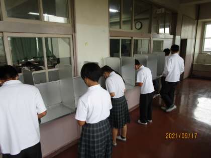 そして、投票です。北条中では、市の選挙管理委員会より本物の投票道具を借りています。将来選挙に行くことが当たり前になるように、少しでも本物に触れてほしいという思いからです。