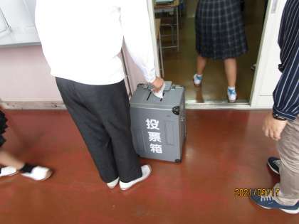 感染症対策で各クラス、アルコール消毒の後、投票用紙に記入しました。