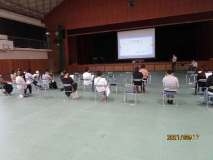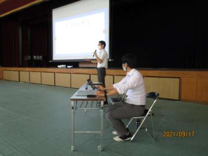 翌日には台風が来るかもしれないという悪天候の中、お越しいただきました保護者の皆さま、ありがとうございました。2年生の教員より、10月10〜11日予定の林間について、いろいろと説明いたしました。