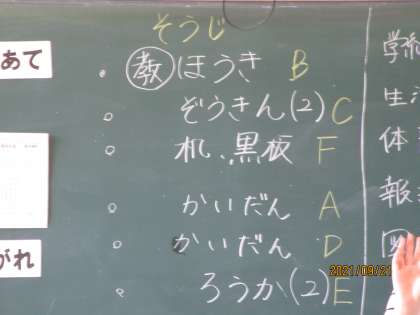 きおのクラスでも後期の新しい委員を決めていました。班替えもあったようです。途中から学級委員が前に出て司会をしていました。すばらしい。